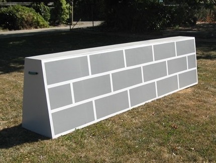Available in the colour of your choice - brick on one side or both sides plain.  Heights of 600mm and 800mm and width of 2.4 metres.  Also available as 600mm high and 1.8 metres wide.